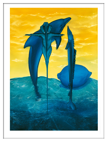 Bild: Erich Kraft, Kunstpostkarten. Titel:     Diskusion der Fische